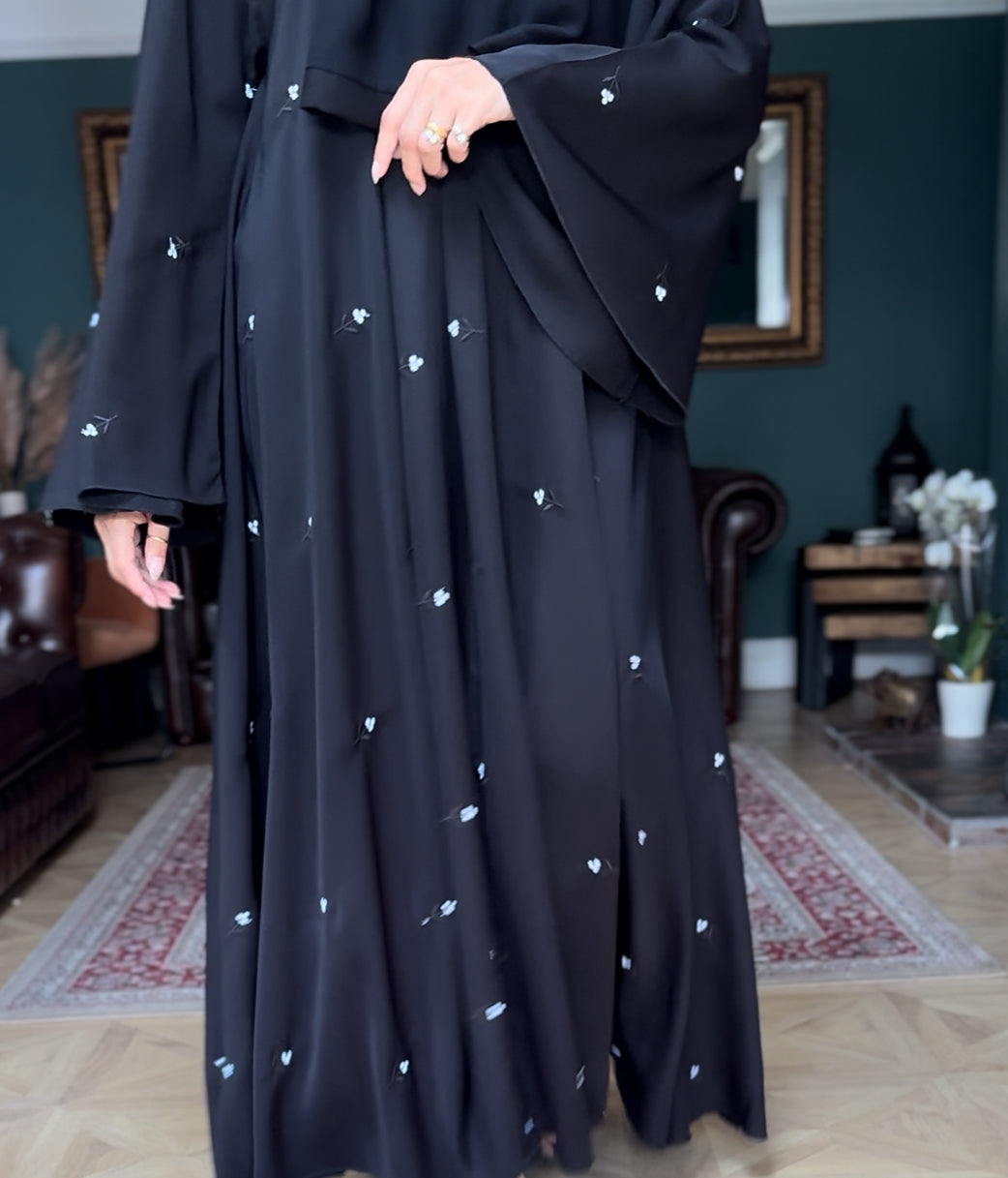 Made from luxuriously soft, high-quality fabric that feels buttery against the skin, this abaya is expertly stitched with neat overlocked seams for a flawless finish. Crafted from premium Nida, it’s lightweight, crease-resistant, and exudes a refined, luxurious look.